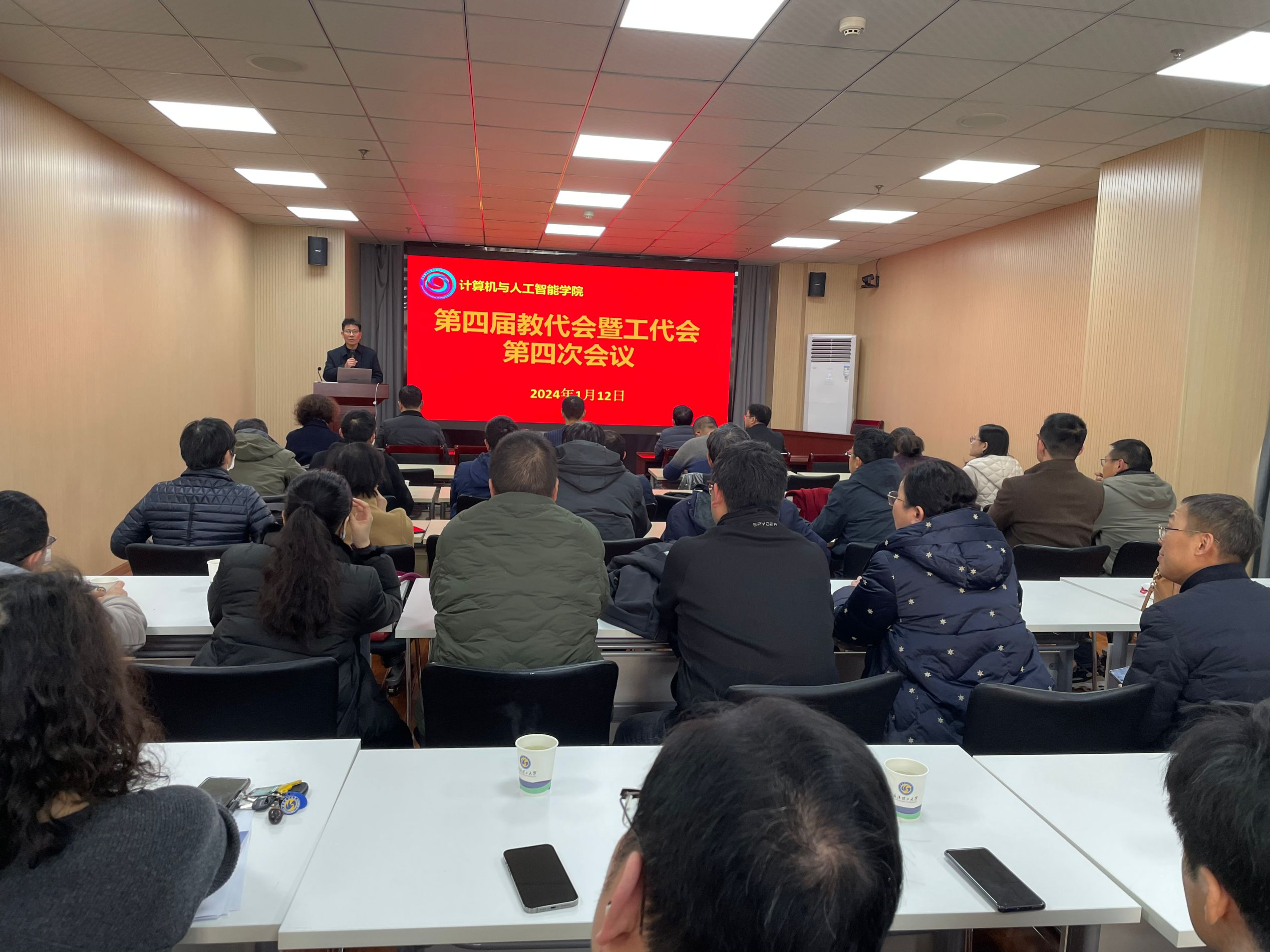 2024年1月12日,学院在学海510报告厅召开第四届教代会暨工代会第四次会议,学院教代会代表、工会会员代表参加,会议由学院党委书记、工会主席张晓寒主持。
